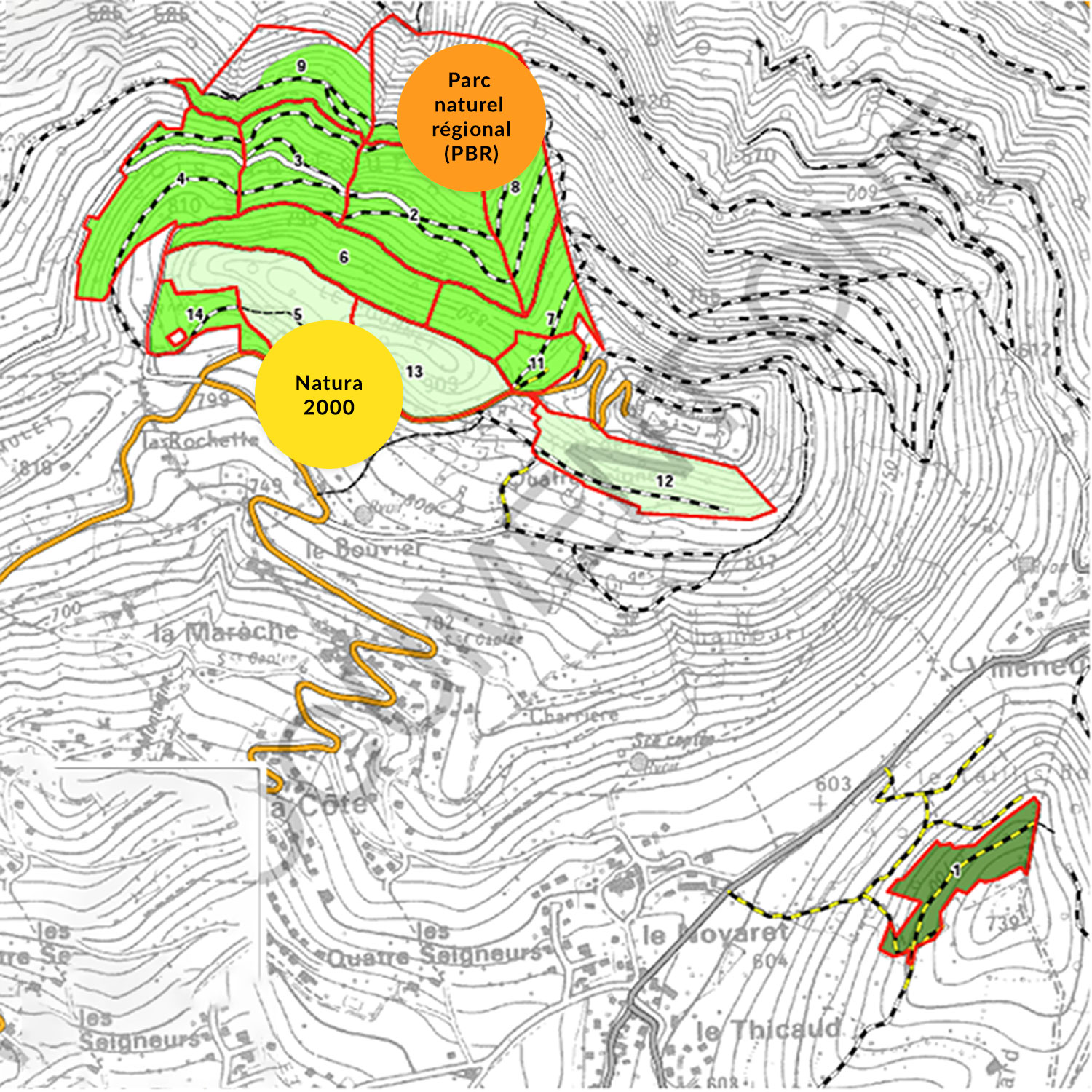 Le DOCOB pour cette zone en sommet de falaise préconise la non-intervention ou l’exploitation traditionnelle.