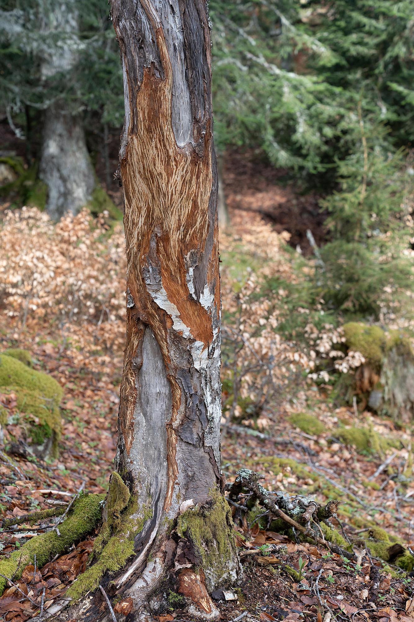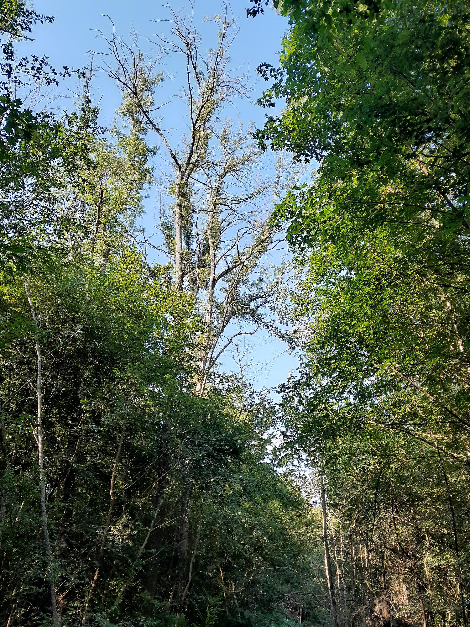 En forêt du Grand Bois : le Hêtre est l’essence dominante sur la forêt : elle est peu résiliente face au changement climatique en cours. Les résineux (sapins, épicéas, douglas) subissent des dépérissements importants impactés par les sécheresses répétées.